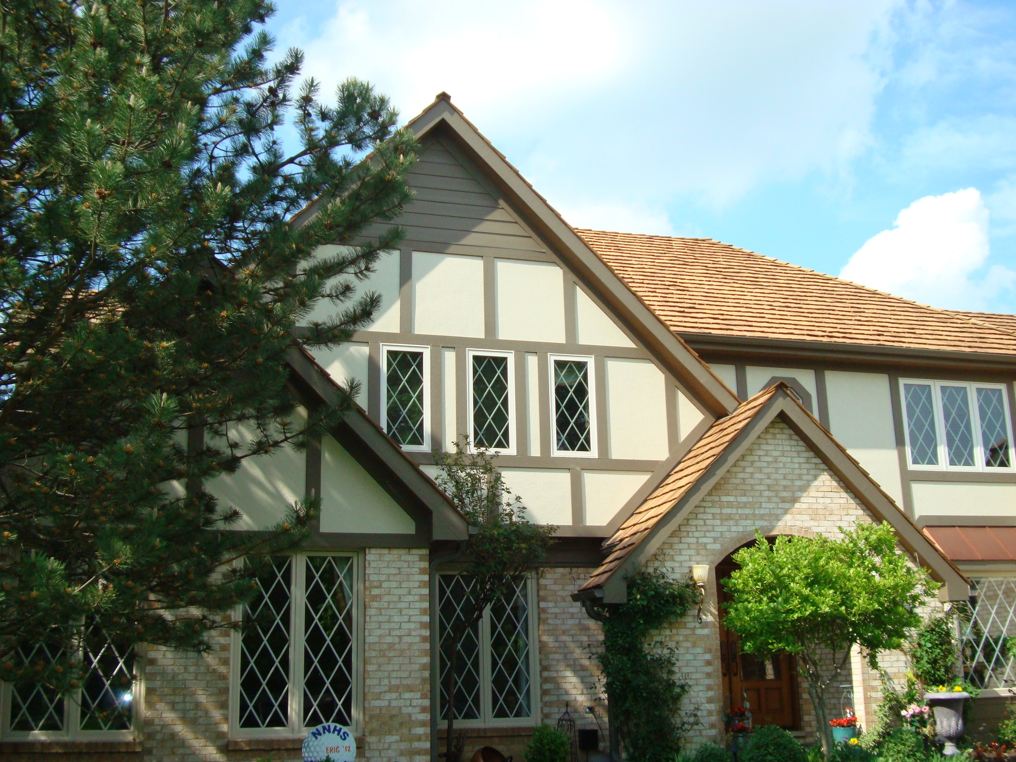 Most traditional Tudor architectural styles use stucco with decorative wood half-timbering for the exterior. In some areas of the country, Tudor-style homes use stone or brick for the exterior of the first story, and stucco with wood half-timbering for the second story. However, many homeowners today are experimenting with modern interpretations of traditional siding profiles.